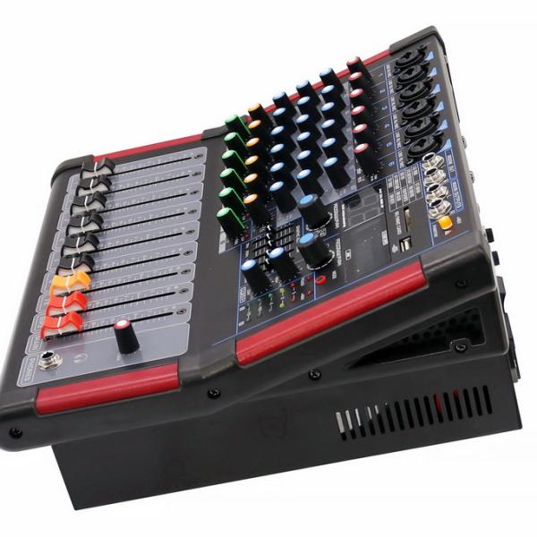 Sturdy metal housing with red-accented side panels. Portable and rugged — suitable for touring musicians, event organizers, churches, schools, and home users.
