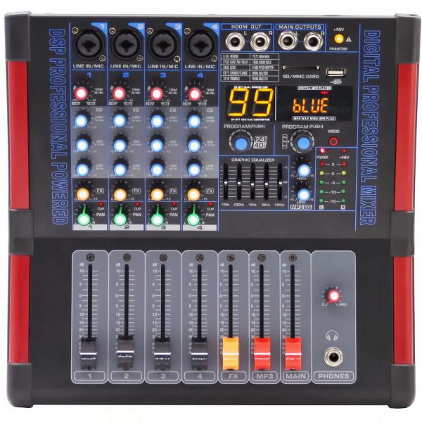 4 Channel Digital Professional Audio Mixer with Built-in 2x 500W Dual Channel Power Amplifier