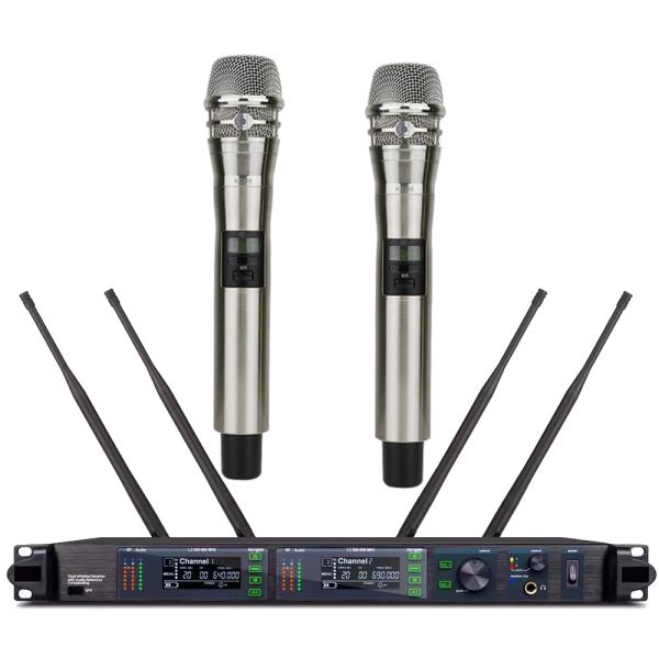 Elevate your audio experience with the AD4D-II Dual Channel Digital Wireless Microphone System, featuring two premium silver KSM8 handheld microphones and a powerful 1U rack-mount receiver. Designed for professional-grade performance, this system delivers crystal-clear vocal reproduction, long-range wireless transmission, and interference-free operation — perfect for any stage or home entertainment setup.