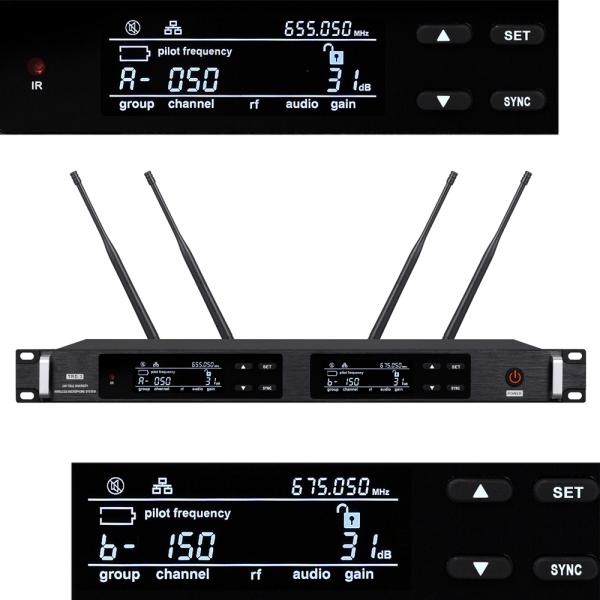 🛡️ PROFESSIONAL 1U METAL RECEIVER: Built to withstand the rigors of touring, the receiver features a premium black metal chassis designed in a standard 1U rack-mount size. The dual blue LED digital displays provide real-time monitoring of signal strength, channel, and frequency for stable stage control.