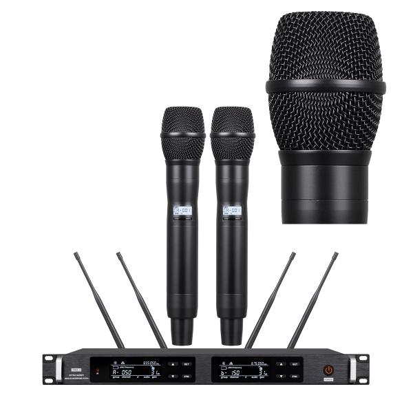 Professional Dual-Channel UHF Wireless Microphone Solution – engineered for large venues and mission-critical vocal performances. This complete set includes a 1U rack-mount digital receiver and two KM9 all-metal handheld transmitters, delivering an ultra-stable wireless link of 300 to 600 meters on the UHF 610-670 MHz band. With pilot frequency, IR sync, and encrypted digital transmission, your sound stays clear, secure, and free from interference.
